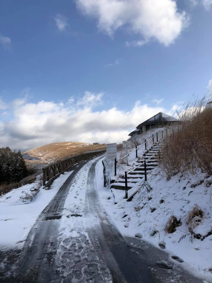 生石高原で雪景色に遭遇して…